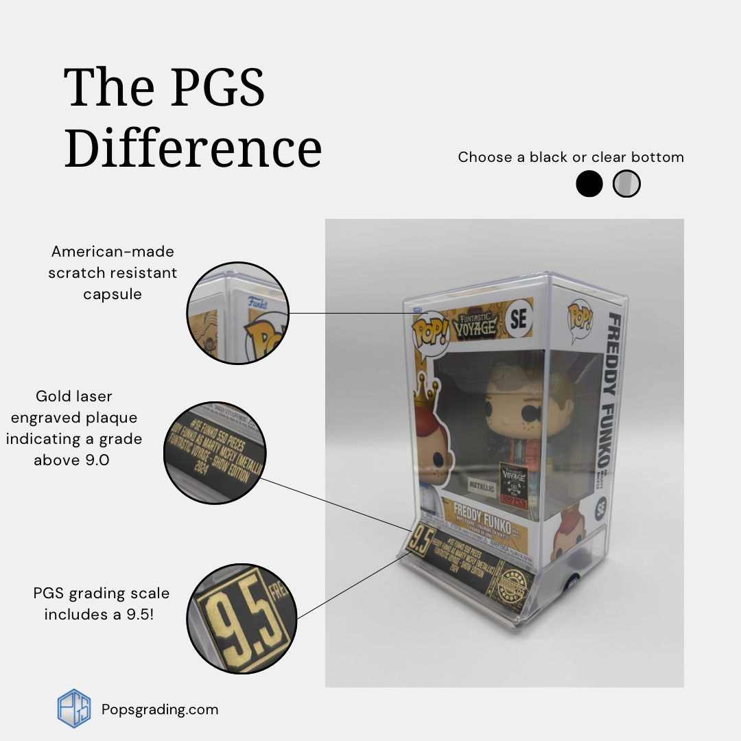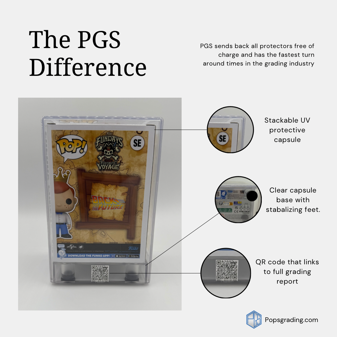 Our goal is to build a solid reputation in the industry and to be known for our strict grading standards. We are striving to build a trustworthy rapport with you, our fellow collectors, by authenticating and grading Pops!. We take our time inspecting every microfiber of the box and paint lines of the Pop!, as well as its authenticity. We use LED lighting and microscopes to identify every detail, with the hopes of finding that elusive 10!